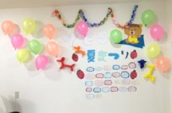 夏休みの終わりにお祭りを開催しました。子どもたちも看板や飾りつけをお手伝いしてくれました。