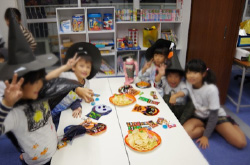 10月31日にハロウィンパーティーを行いました。約1ヶ月かけて衣装を作りました。マントや帽子、そしてTシャツに絵をかいて自分だけのオリジナルTシャツを作り、当日は衣装を身に着けて、ゲームやお菓子を食べて楽しみました。